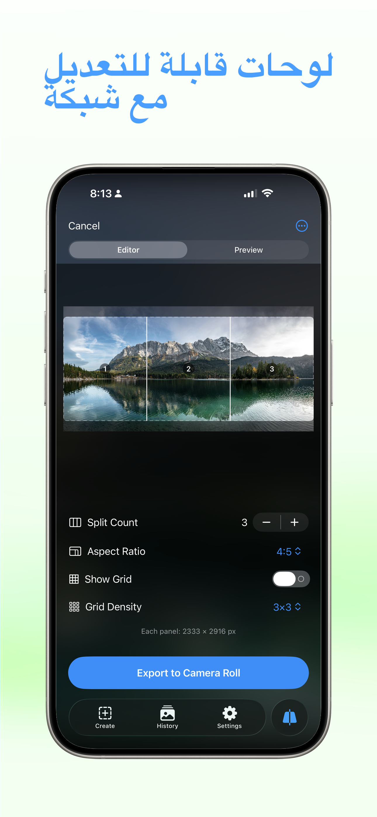 الصور والفيديوحوّل أي صورة بانورامية إلى منشور دوّار مثالي لإنستغرام. قسّم واستعرض وصدّر — بنقرة واحدة.