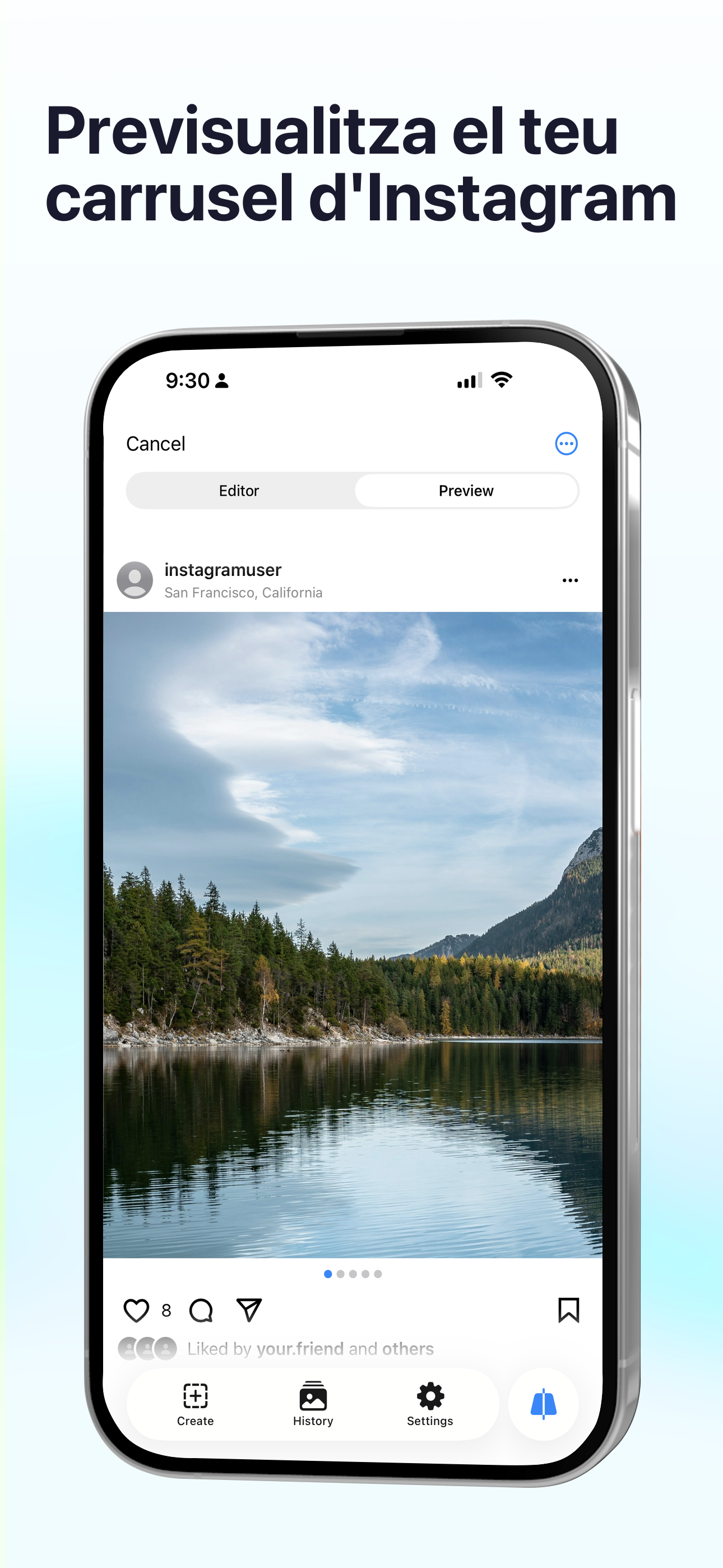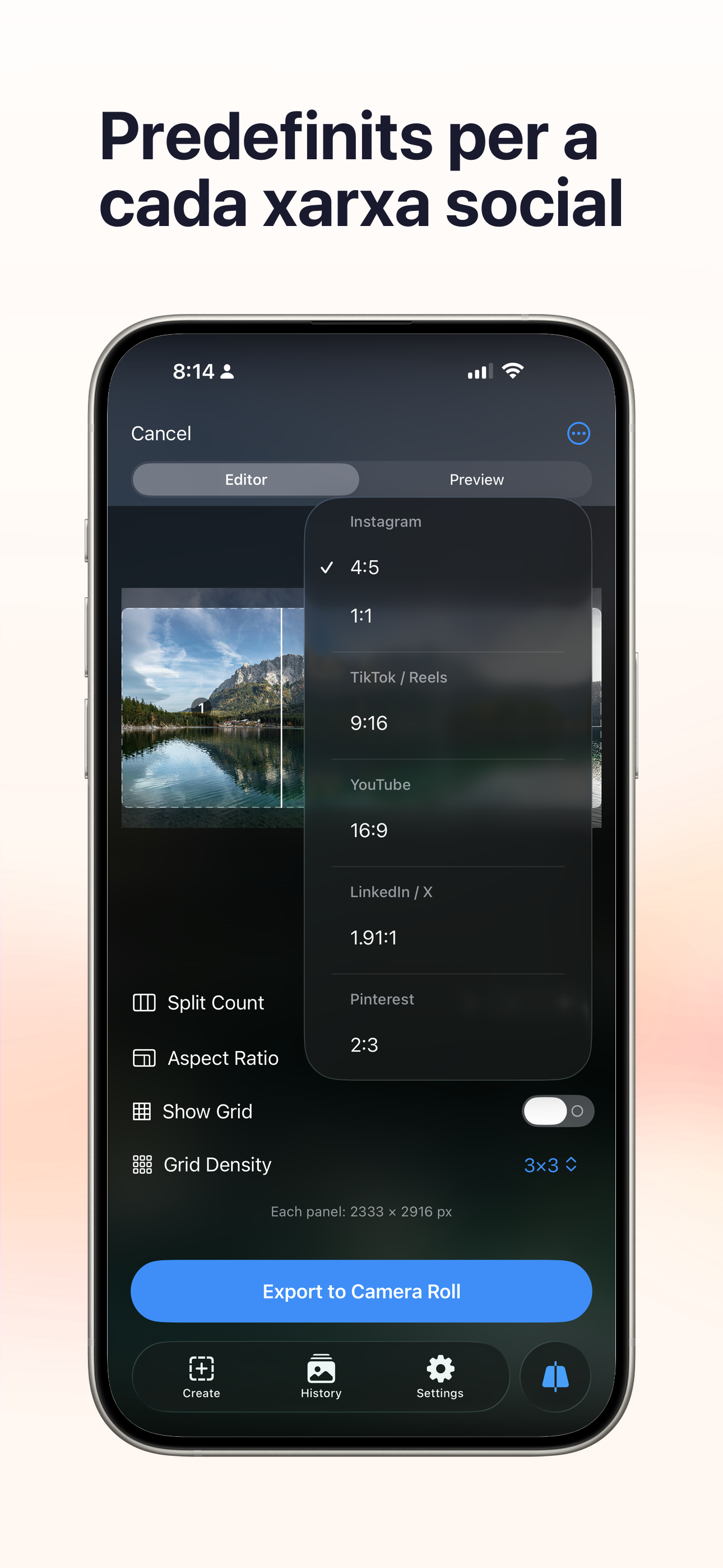 Foto i vídeoConverteix qualsevol panoràmica en un carrusel d'Instagram perfecte. Divideix, previsualitza i exporta — tot amb un sol toc.