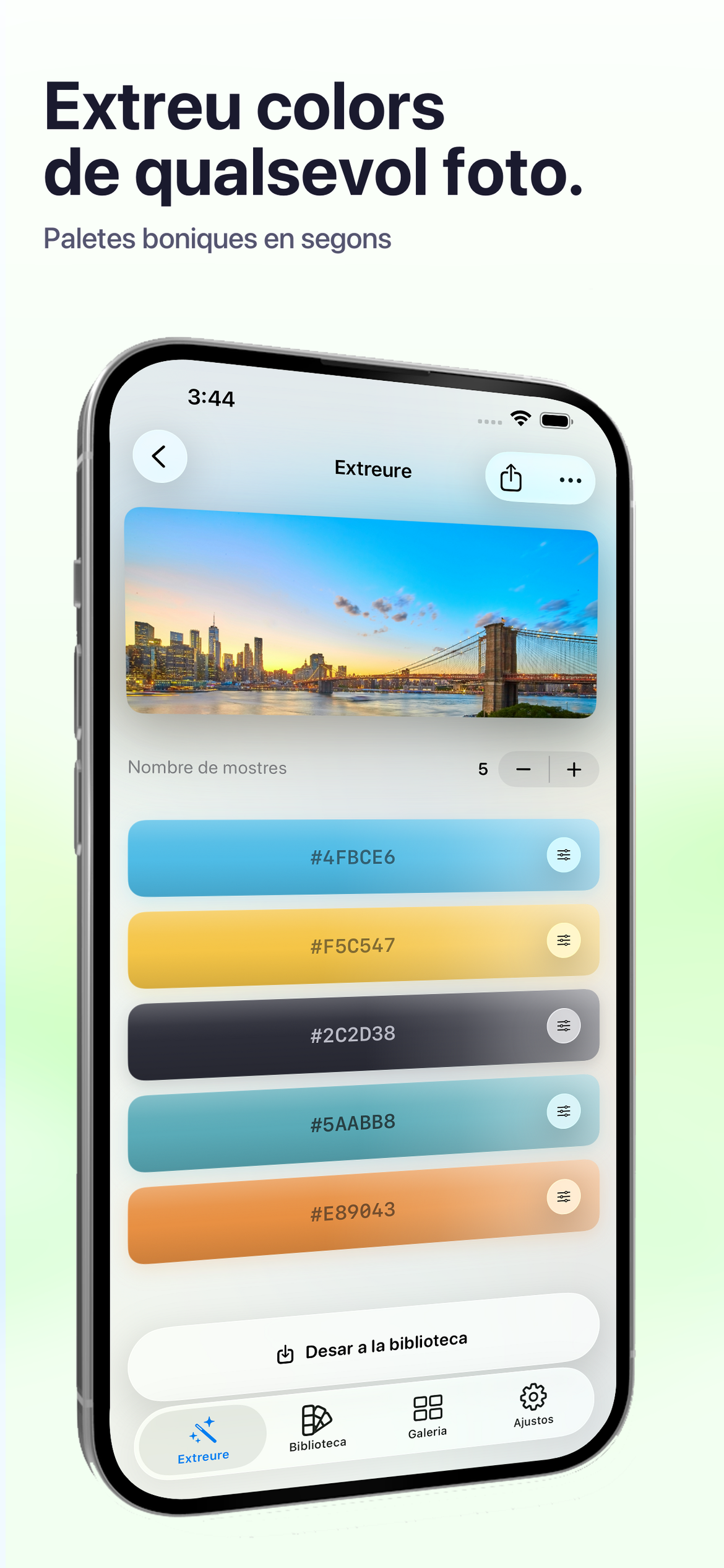 Turn any photo into a stunning color palette — instantly, on-device. Save, organize, and share with HEX, RGB & HSL codes.