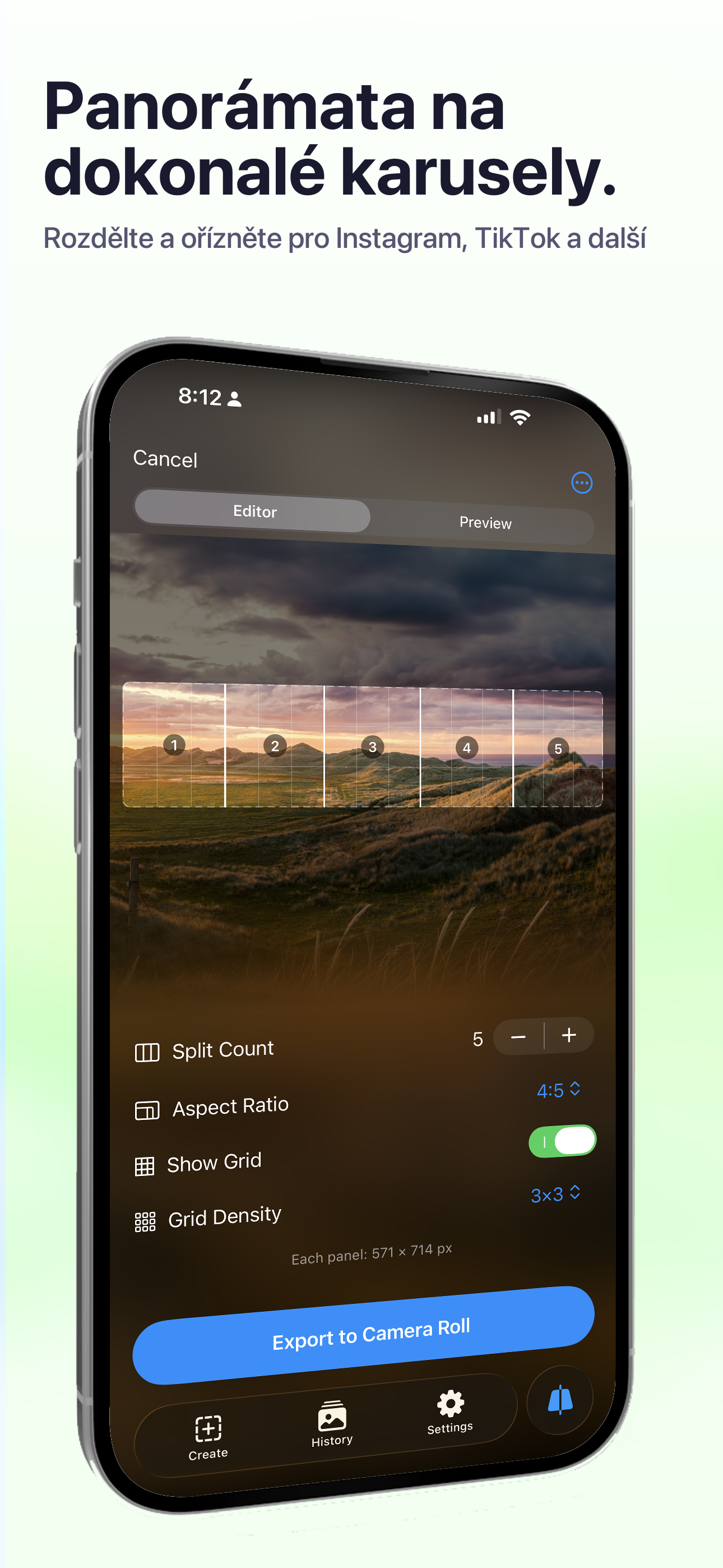 Splitscapes vezme vaše panoramatické fotografie a inteligentně je rozdělí na dokonale dimenzované snímky pro Instagram karusely. Stačí vybrat panorama, zvolit počet dílů a během sekund mít příspěvky připravené.