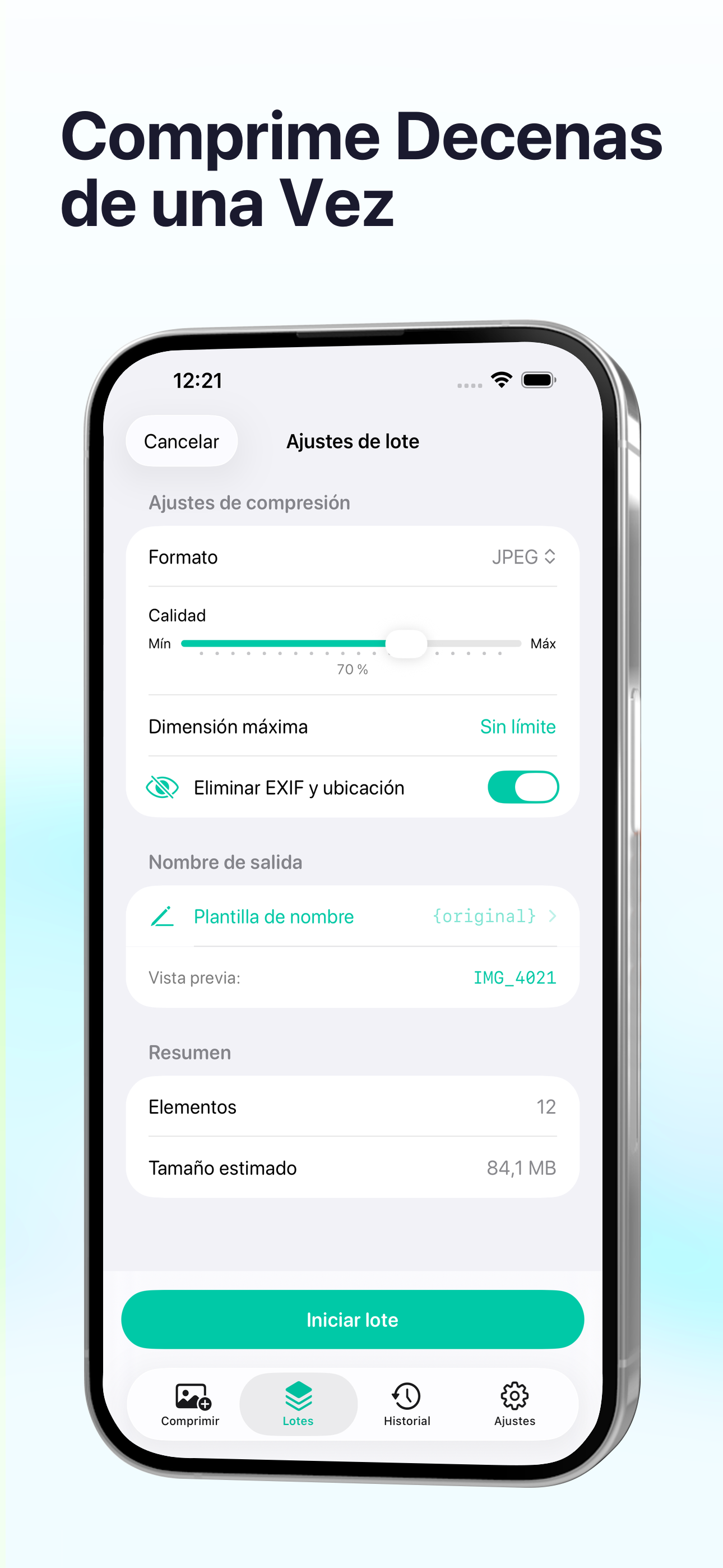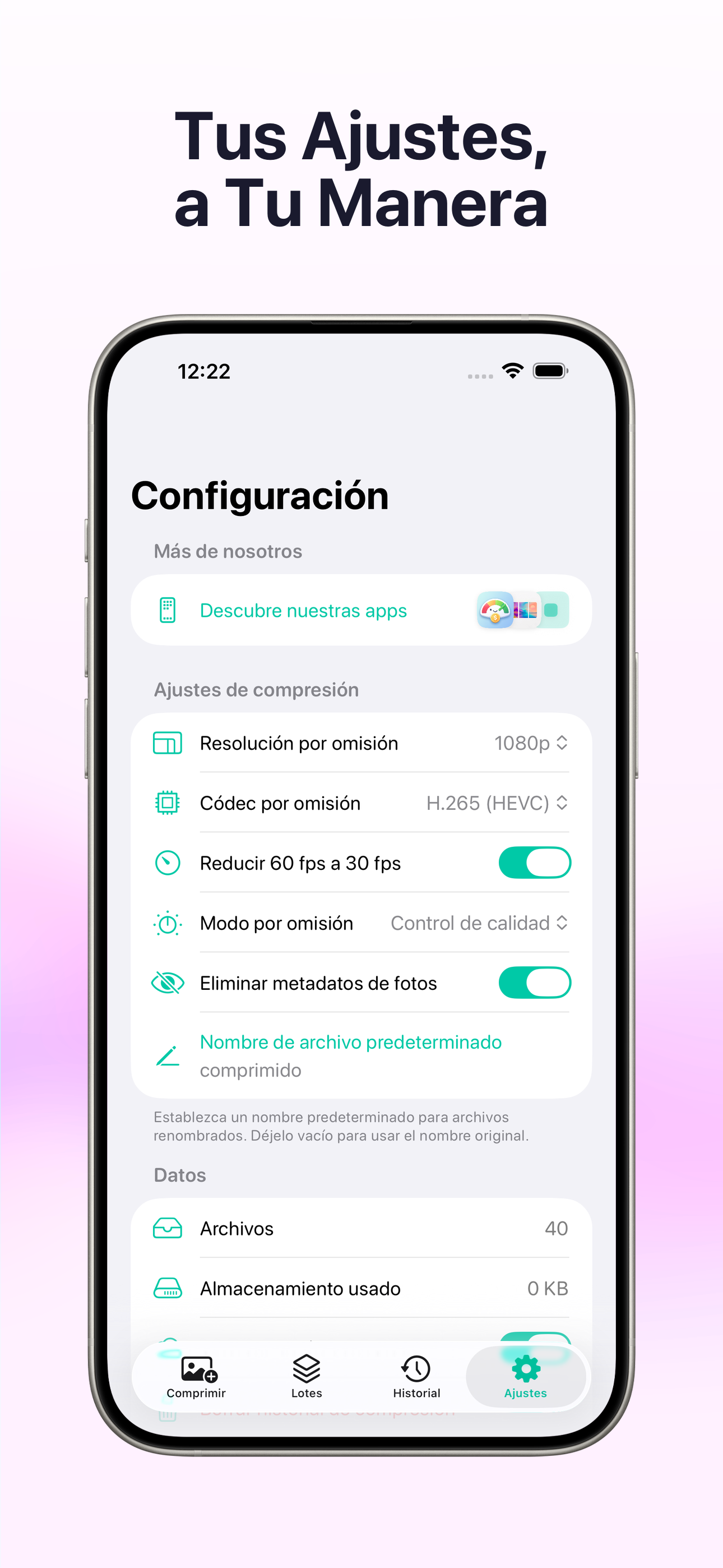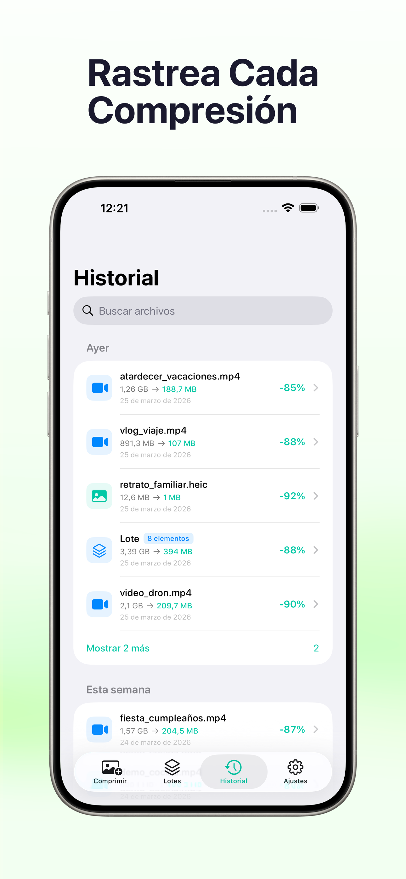 Comprime videos y fotos en segundos