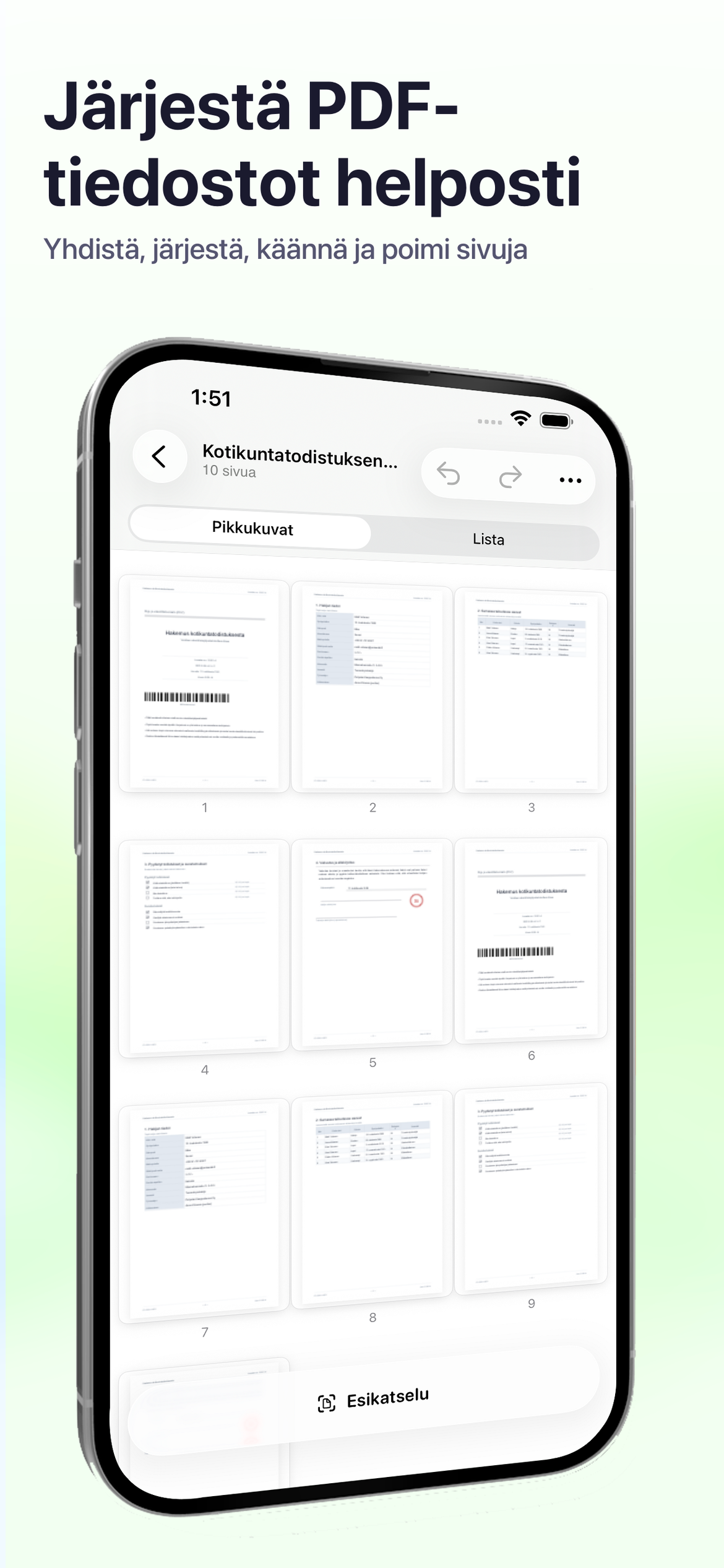 Drag to reorder pages. Merge PDFs into one. Rotate, extract, and delete pages. Everything happens on your iPhone — nothing is ever uploaded.