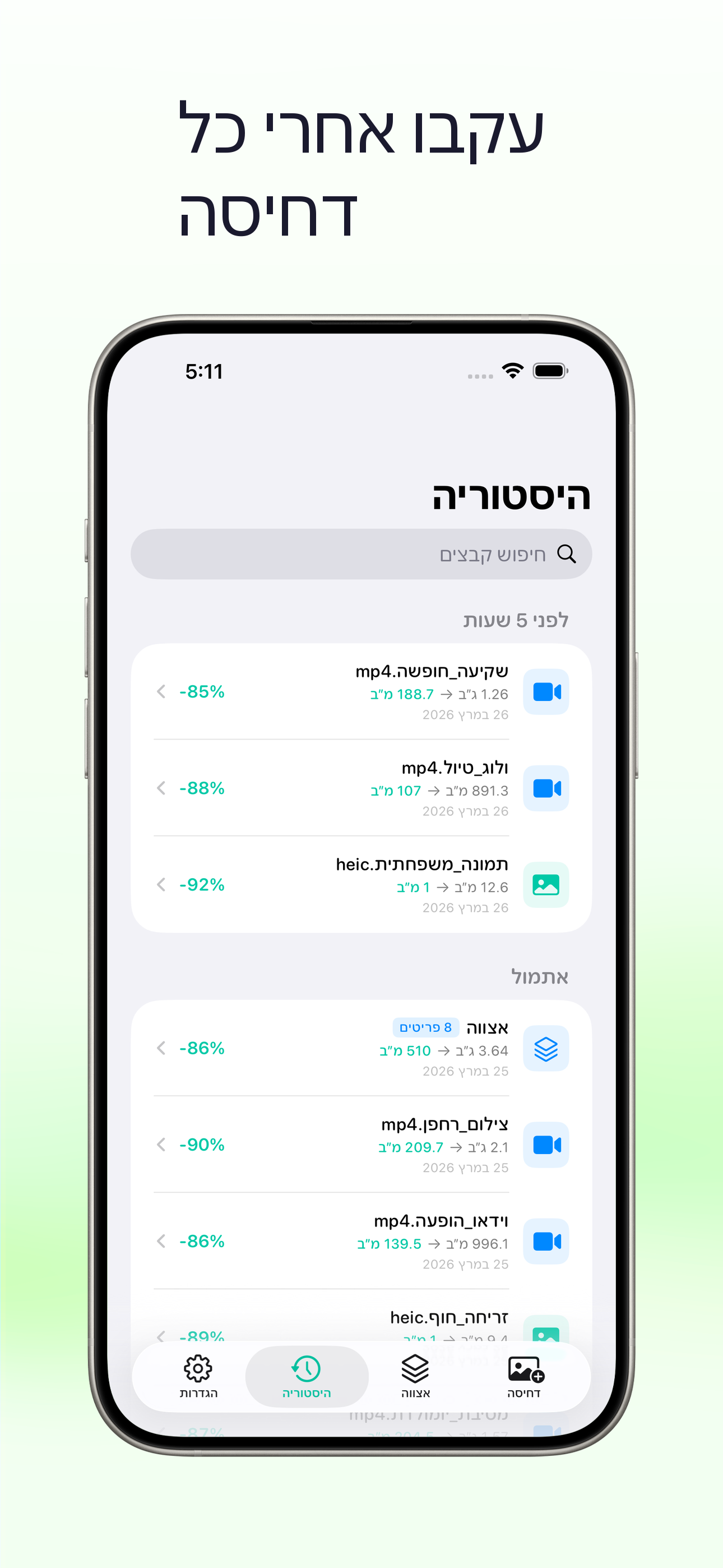 Compressy מכווץ את הסרטונים והתמונות שלך ישירות במכשיר — ללא העלאות, ללא חשבונות, ללא המתנה. בחר קובץ, התאם איכות וגודל עם הערכות בזמן אמת ושתף את התוצאה הדחוסה מיד.