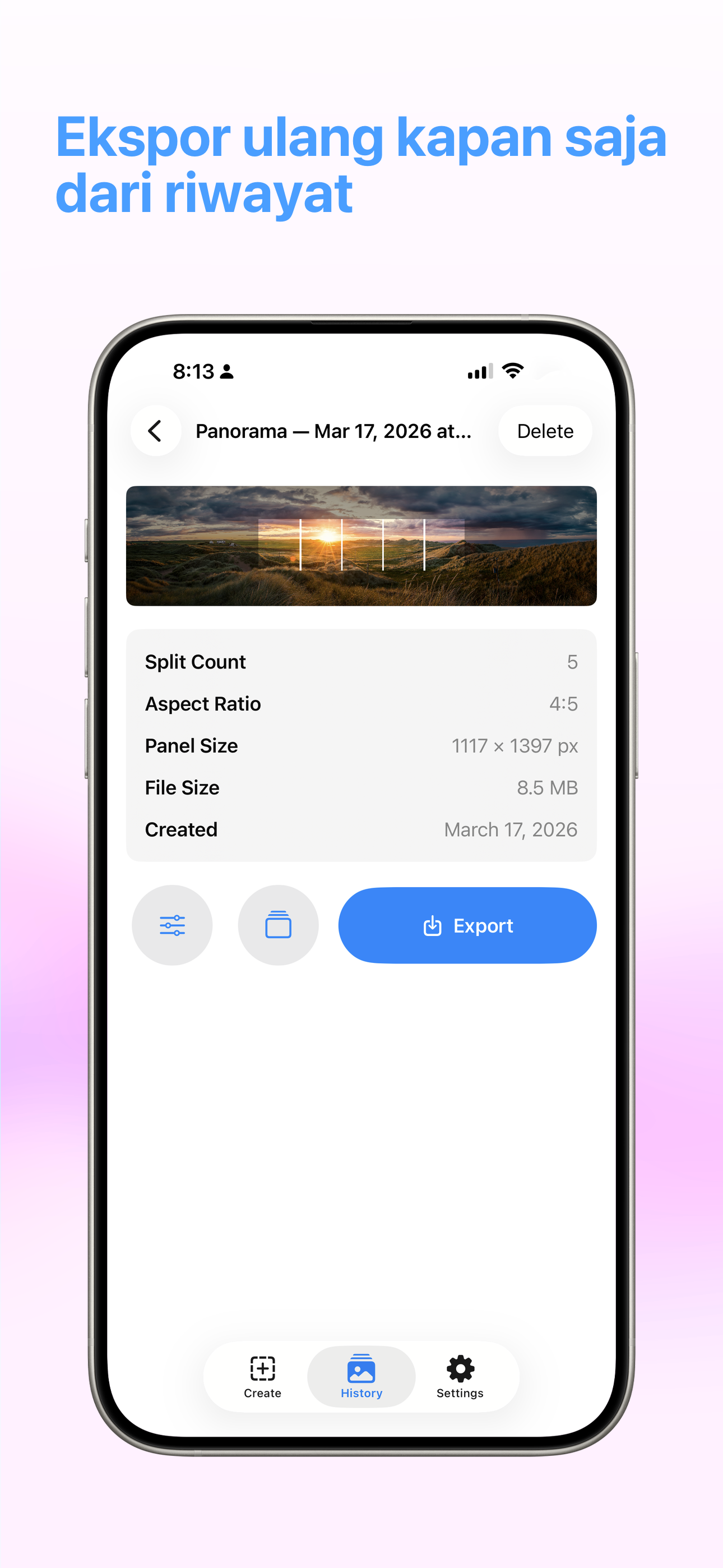 Foto & VideoUbah panorama apa pun menjadi carousel Instagram sempurna. Bagi, pratinjau, dan ekspor — semua dalam satu ketukan.
