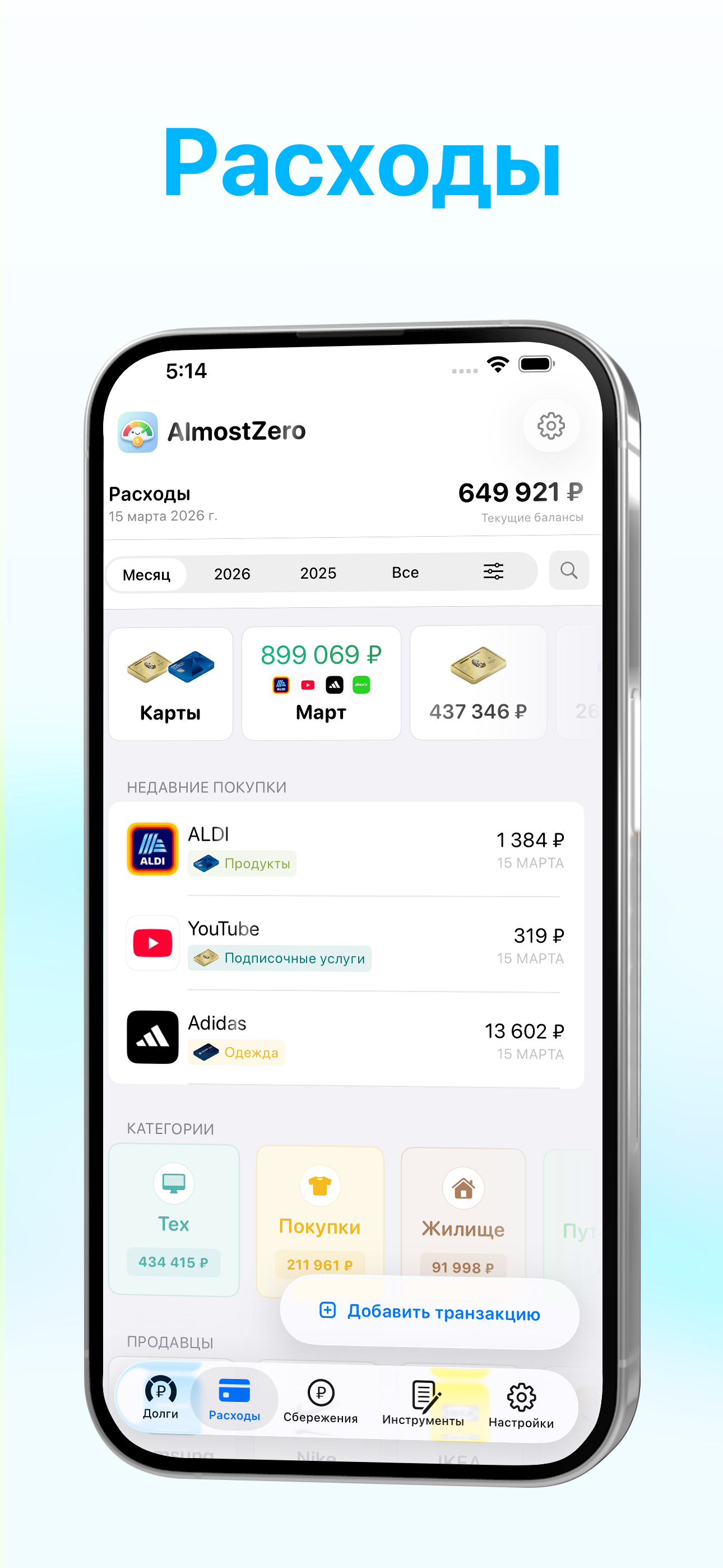 ФинансыAlmostZero — это приложение для управления личными финансами, которое помогает контролировать долги, вести учёт расходов и достигать целей по накоплениям. Кредитные карты, студенческие кредиты, ипотека, автокредиты — соберите все долги в одном приложении и получите ясную картину своей финансовой ситуации.
