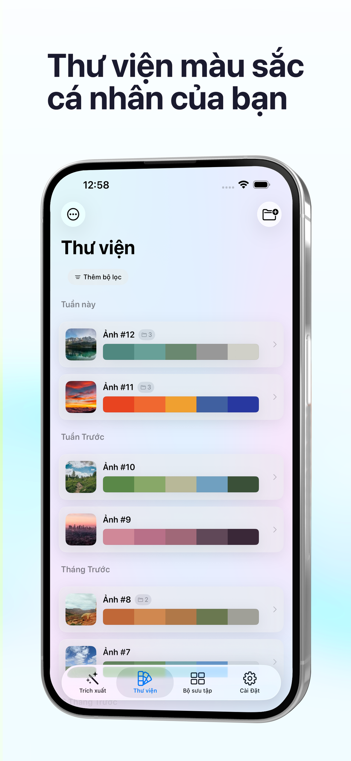 Turn any photo into a stunning color palette — instantly, on-device. Save, organize, and share with HEX, RGB & HSL codes.