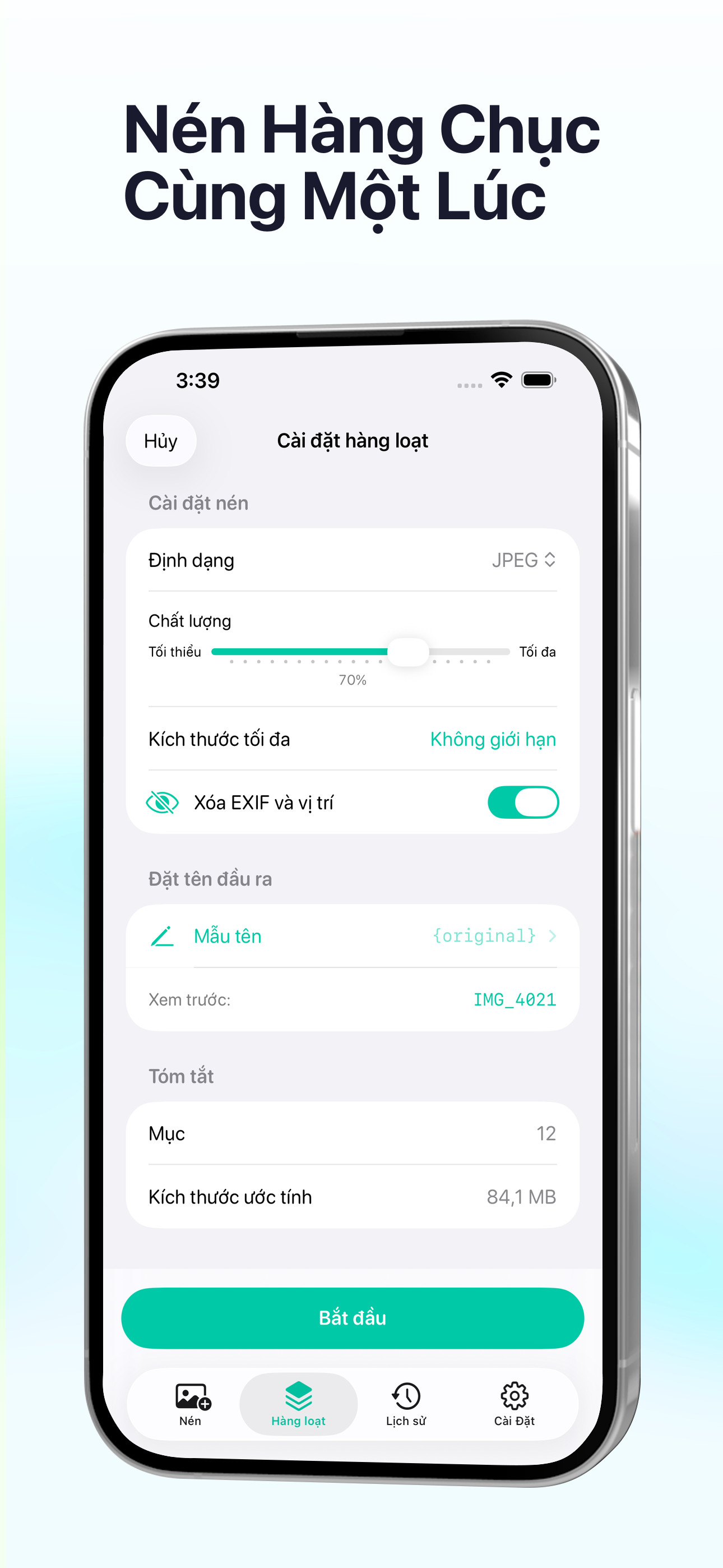 Compressy thu nhỏ video và ảnh ngay trên thiết bị của bạn — không tải lên, không tài khoản, không chờ đợi. Chọn tệp, điều chỉnh chất lượng và kích thước với ước tính thời gian thực và chia sẻ kết quả nén ngay lập tức.